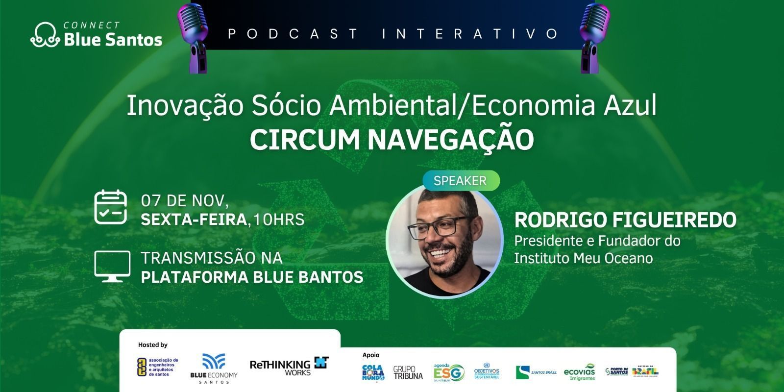 Instituto Meu Oceano firma parceria com o Programa Blue Economy Santos e fortalece ações em inovação e sustentabilidade costeira O Instituto Meu Oceano assinou, oficialmente, o Termo de Adesão ao Programa Blue Economy Santos, consolidando sua atuação em iniciativas voltadas à inovação socioambiental, à economia circular e à regeneração costeira. A parceria integra as ações do movimento ColaBora Mundo, que articula coletivos e instituições comprometidas com os Objetivos de Desenvolvimento Sustentável (ODS) na região. Inspirado no conceito de Economia Azul, proposto por Günter Pauli, o programa busca promover uma alternativa sustentável à economia tradicional, utilizando princípios da natureza, recursos locais e processos regenerativos para gerar valor com desperdício zero. Entre seus pilares estão: Valorização da biodiversidade marinha e costeira Uso sustentável de oceanos, rios e lagos Substituição de tecnologias poluentes por soluções acessíveis e de baixo impacto Geração de emprego local e inclusão social Integração com os ODS 6, 12, 13 e 14 O Instituto Meu Oceano, organização sem fins lucrativos, atua como mecanismo de apoio a empresas na implementação de metas ESG e ODS. Com foco em programas de inovação e impacto socioambiental, o Instituto estruturou uma rede nacional de NEIAs – Núcleos de Empreendedorismo e Inovação Ambiental, com unidades em São Paulo. Entre seus projetos de destaque está o Circum Navegação, reconhecido em 1º lugar pelo Governo do Estado de São Paulo na categoria “Mobilidade Sustentável” do Prêmio SP – Carbono Zero. A iniciativa, que agora conta com o apoio do Blue Economy Santos, é a primeira embarcação de passageiros 100% elétrica e solar da Baixada Santista, integrando mobilidade aquática de emissão zero, educação ambiental e regeneração costeira — totalmente alinhada à Política Estadual de Mudanças Climáticas.